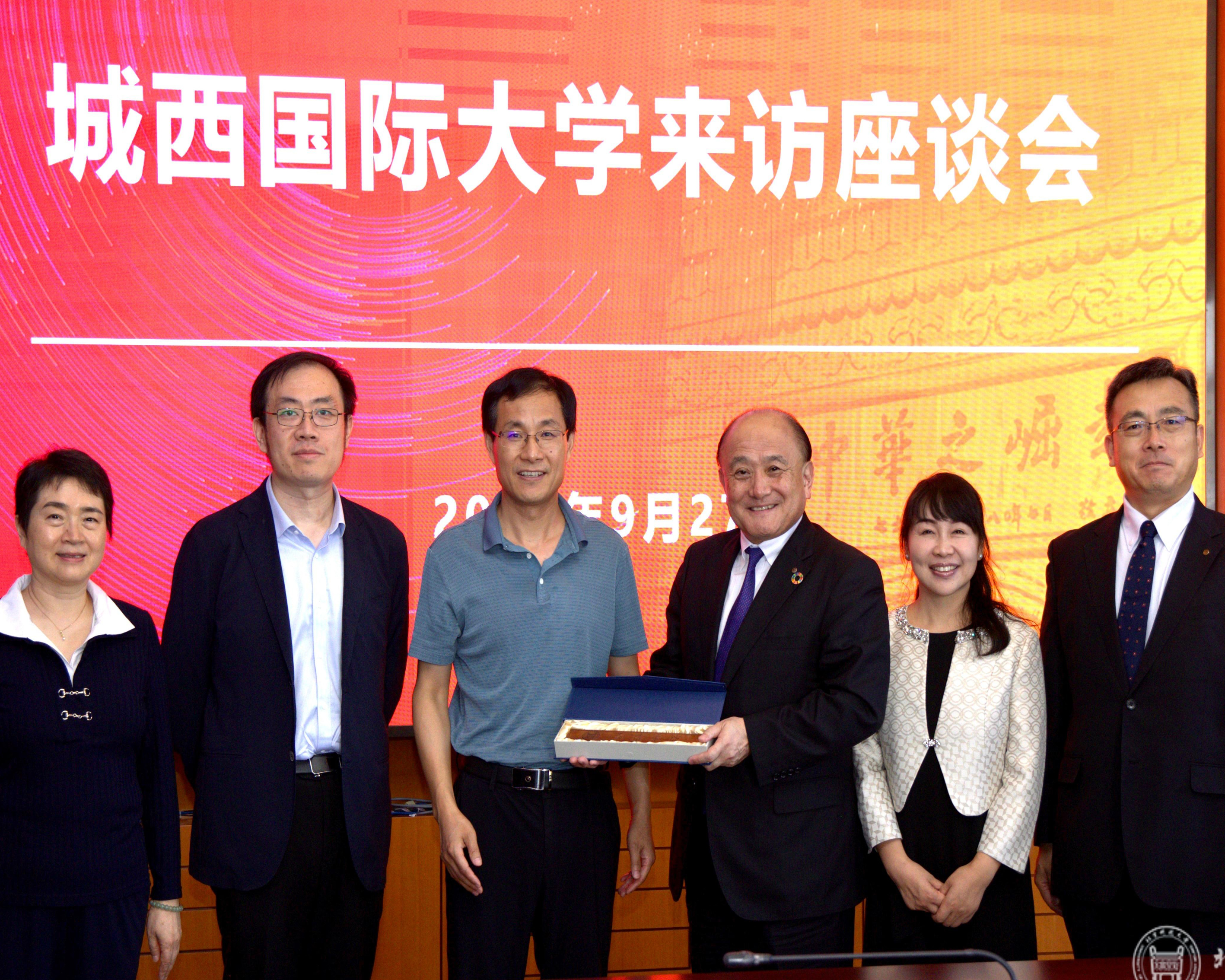9月27日,日本城西国际大学副校长仓林真砂斗一行来访交流,学校副校长吕昭平、国际合作交流处处长张达威、外国语学院院长陈红薇以及外国语学院日语系主任王书玮出席了座谈交流会。座谈会由陈红薇主持。