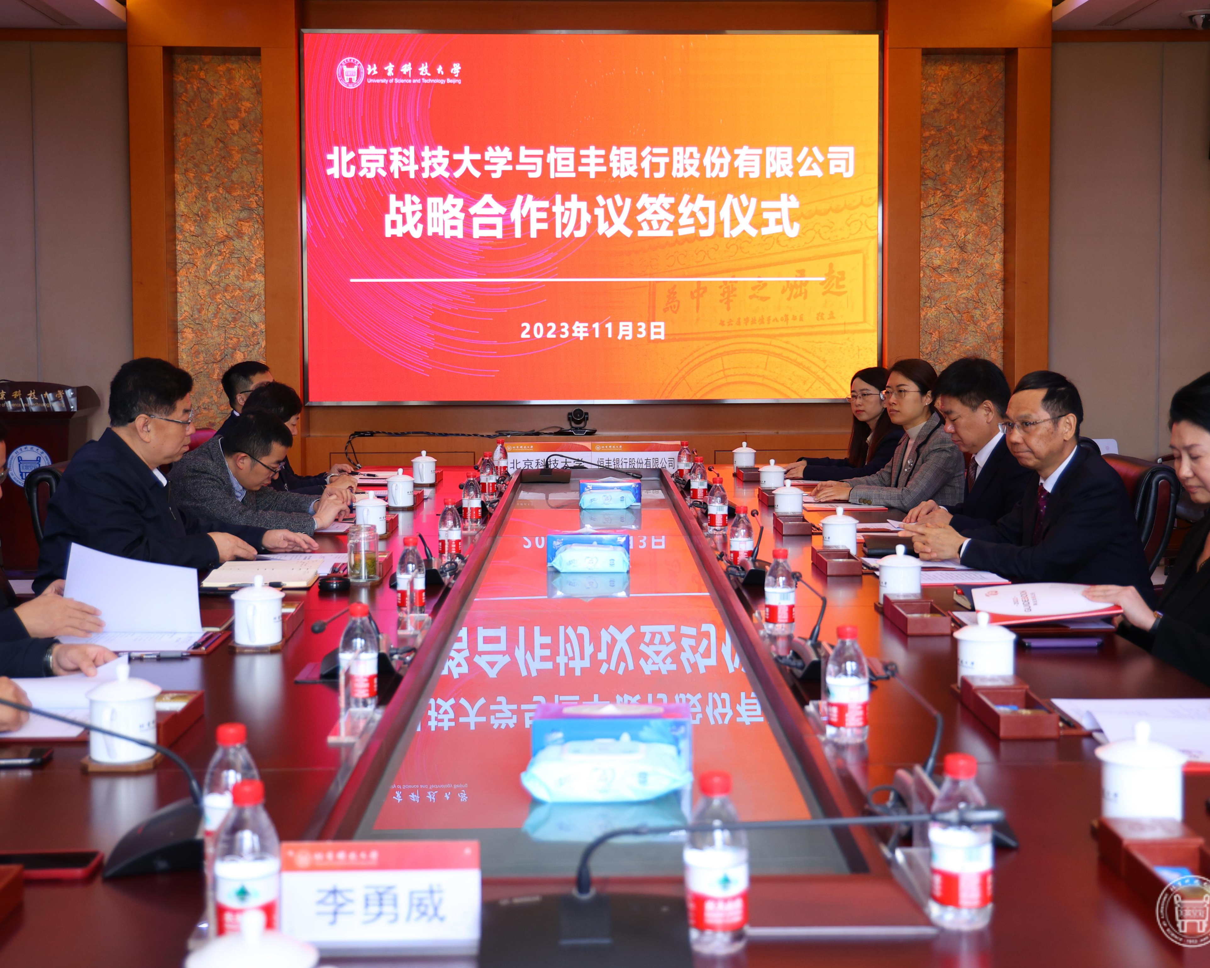 11月3日,学校与恒丰银行股份有限公司战略合作协议签约仪式在办公楼306举行。恒丰银行股份有限公司副行长聂大志,金融机构部副总经理李丽,北京分行党委书记、行长张文利;学校党委副书记孙景宏出席签约仪式。
