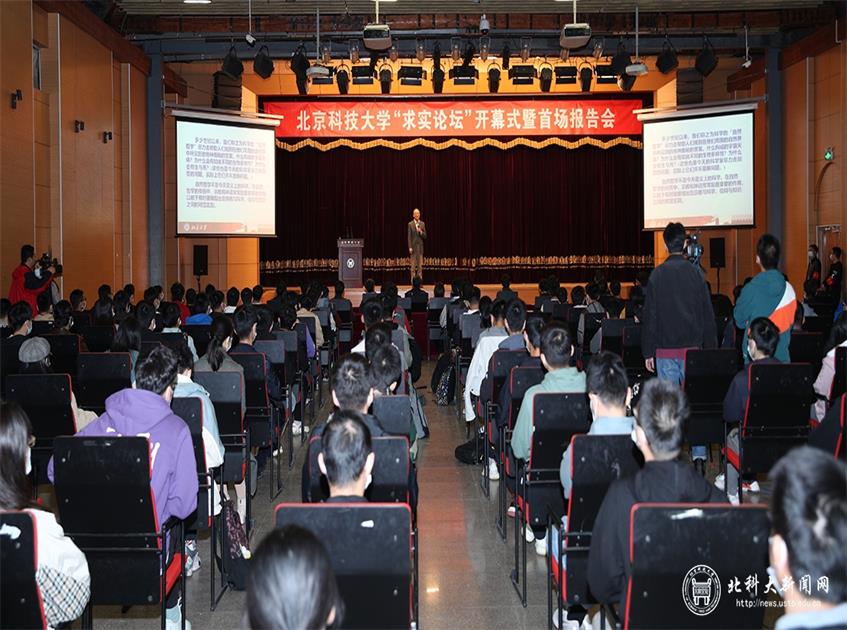 北京科技大学“求实论坛”开幕式暨首场学术报告会于10月16日在教职工礼堂举行,校长杨仁树致开幕辞,中国科学院院士王恩哥作了题为《物理学在科技创新中的核心作用》的学术报告,数百名师生通过“线上+线下”的方式参加了会议。