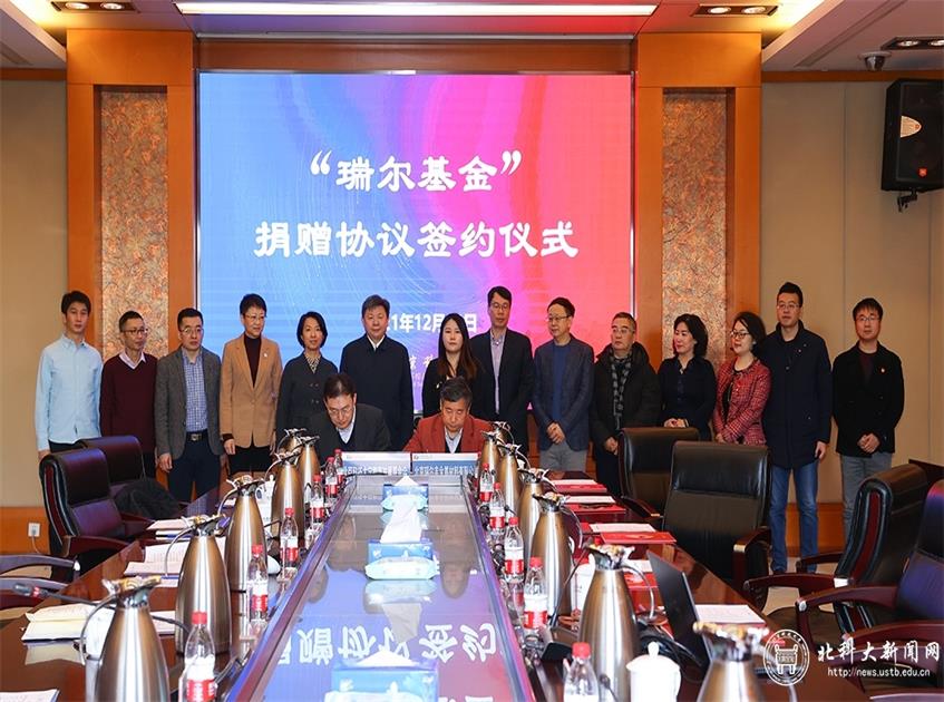 12月20日上午,瑞尔基金捐赠签约仪式在办公楼306会议室举行。北京瑞尔非金属材料有限公司向母校捐赠255万元人民币,设立“瑞尔基金”,用于北京科技大学“一站式”学生服务大厅冠名和在冶金与生态工程学院、材料科学与工程学院、机械工程学院及能源与环境工程学院设立奖助学金。